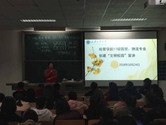 2018年10月24日下午,BB贝博艾弗森官方网站曲峡老师为17级国贸、物流专业学生在教2-305举办了创建“文明校园”的宣讲会。 讲座一开始,老师给我们讲述了她最近查宿舍所得到的反馈,她用实际的例子让我们懂得宿舍是大学生联系...