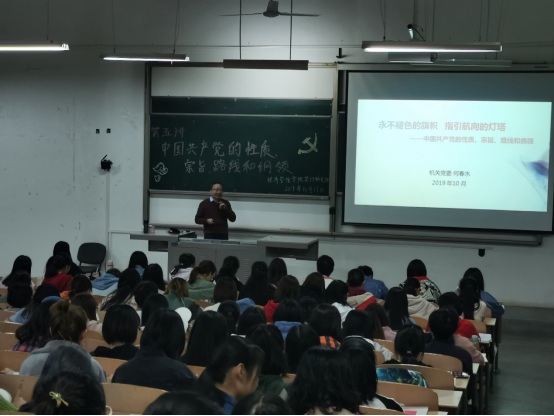 10月17日晚7时,BB贝博艾弗森官方网站第59期党课培训第五讲“中国共产党的性质、宗旨、路线和纲领”主题教育党课教3-217教室顺利开讲,本次党课邀请到贝博官网纪委副书记、党委统战部部长何春水老师担任此次党课的主讲人,为参加党课学员们进行了理论授课与指导。