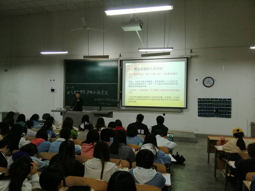 赵伟奇老师首先从树立正确的入党动机、自觉接受党组织的培养、严格遵守入党程序,以实际行动做一名合格党员这四个方面讲解了本节党课的内容。赵老师指出:思想上的问题是最重要的问题,树立正确的入党动机十分重要,要树立正确的入党动机,否则将辜负自己,辜负人民。随后,赵老师详细阐述了学生常见的入党动机,得出总结:正确的入党动机是献身共产主义事业,更好的为人民服务。此外,赵老师还强调同学们应正确对待党组织的考察。考察不是一时的考察,而是终身的考察,入党积极分子应当时刻严格要求自己,不断地向党组织靠拢。最后赵老师提到,学生的首要任务是学习,但同时也要积极参与课外活动,从日常小事做起,如考试不作弊,不与同学们发生冲突,尊敬长辈,团结同学等,同学们认真思考积极讨论,在热烈的掌声中结束了本节课的学习。