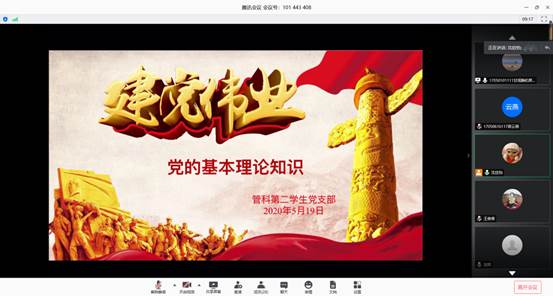 5月19日下午18点30分,BB贝博艾弗森官方网站管科第二学生党支部依托腾讯会议平台组织召开线上专题集中学习,本次会议由学生党员甘成静主持,党支部成员全员参与。