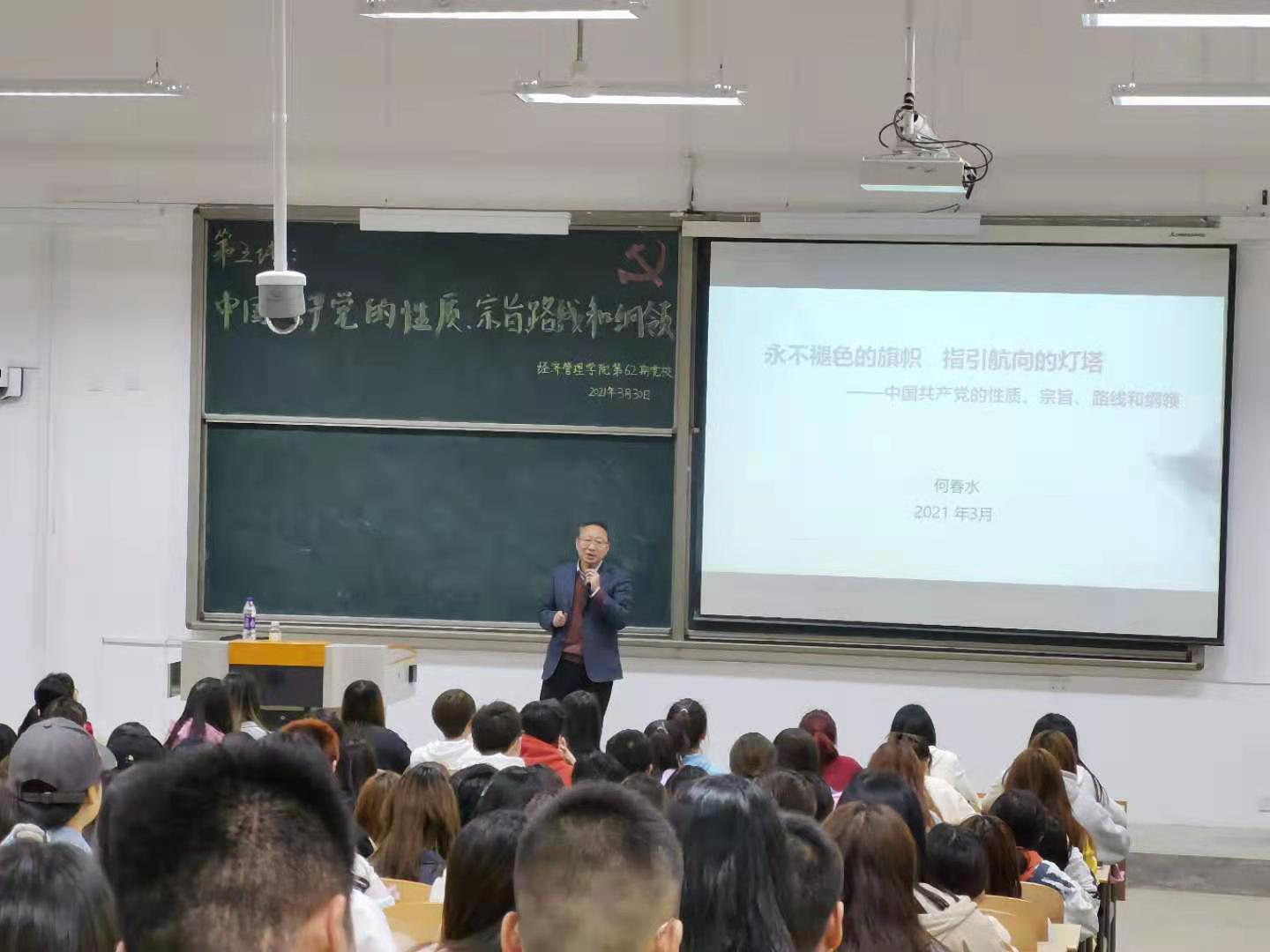 3月30日晚7时,BB贝博艾弗森官方网站第62期分党校培训第三讲“中国共产党的性质、宗旨、路线及纲领”于教1-205教室顺利开讲,本次党课特邀请校纪委副书记何春水老师为260余名党课学员进行指导及授课。
