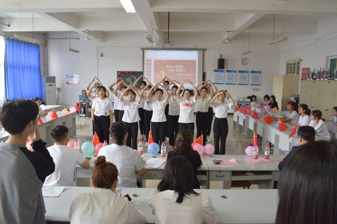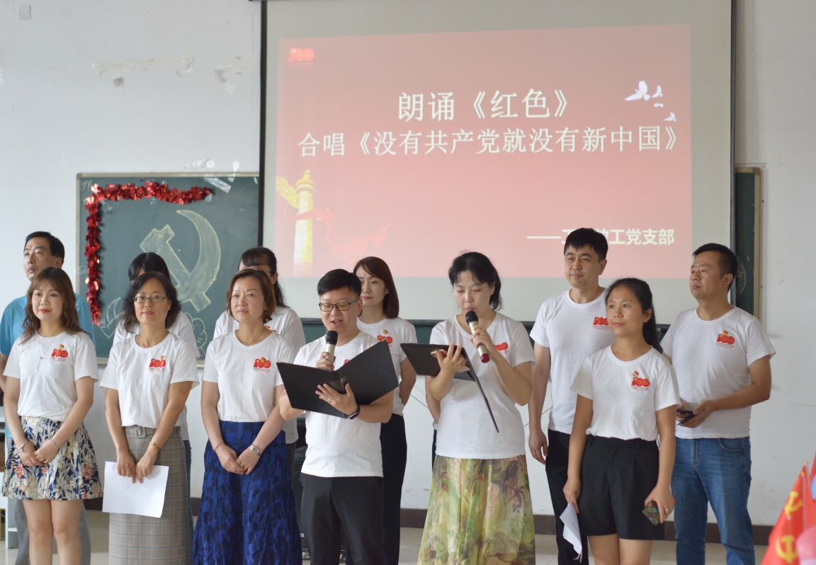 活动现场,学院11个党支部的代表队,通过穿插领唱、合唱、朗诵、舞蹈等形式,唱响主旋律,歌颂改革开放以来,在党的领导下取得的辉煌成就和人民幸福生活。伴随着熟悉而悠扬的旋律,《没有共产党就没有新中国》、《国家》、《歌唱祖国》、《灯火里的中国》等一首首耳熟能详的经典曲目接连上演,唤醒了峥嵘岁月红色记忆,抒发了师生党员对党、对祖国、对社会主义的热爱,唱出了对党的深厚感情和真挚热爱。