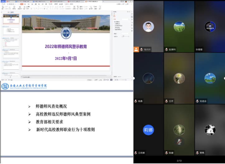 9月30日,为进一步加强师德师风建设,BB贝博艾弗森官方网站通过腾讯会议线上开展了师德警示教育专题讲座暨师德师风突出问题专项整治工作动员会,学院领导、全体教师参加。
