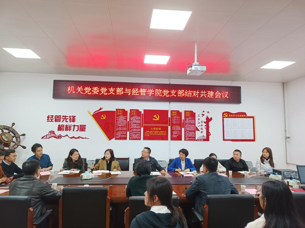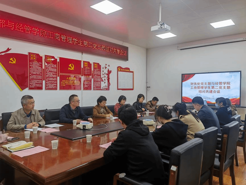 为深入推进机关与学院党建融合,深入学习贯彻习近平新时代中国特色社会主义思想和党的二十大精神,落实立德树人根本任务,加强党建引领作用,近日,在教五楼520举行了机关党委纪检巡察党支部、审计处党支部、财务处党支部与经管学院工商教工党支部、工商第一、第二学生党支部结对共建会议。会议由BB贝博艾弗森官方网站党委书记姬浩主持,总会计师段小存、机关党委书记姜冰清、机关党委副书记陈燕以及各结对共建党支部党员代表参加了会议。