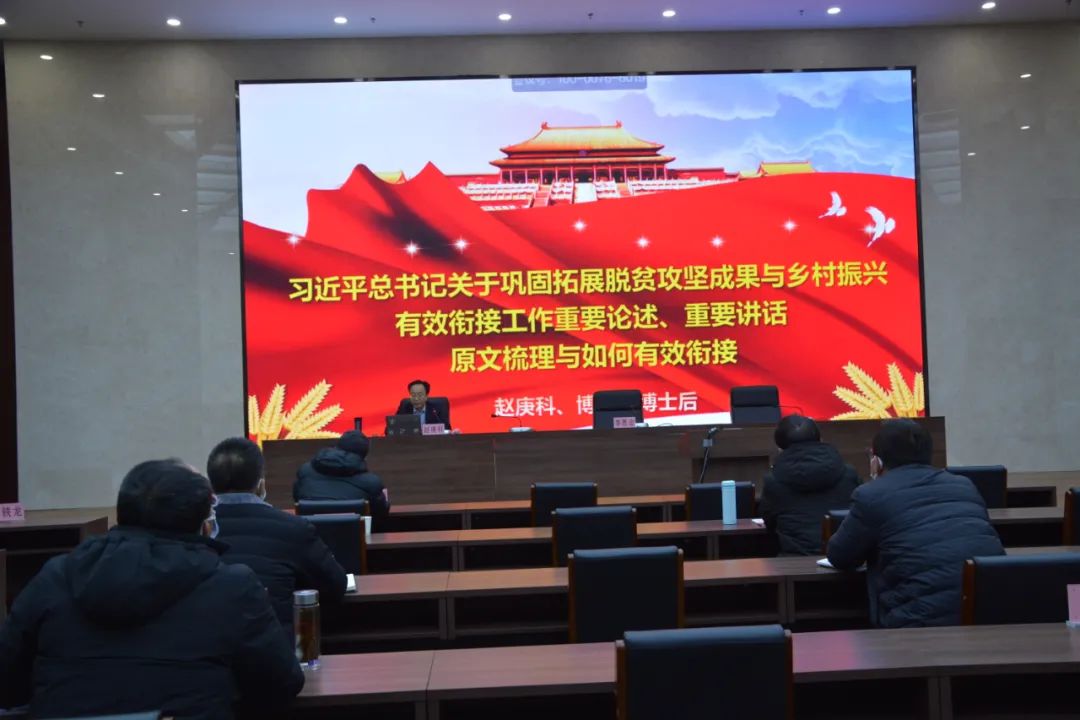 2022年12月21日,学校乡村振兴办公室选派贝博官网工商教工支部书记赵庚科为富平县乡村振兴带头人及帮扶干部能力素质提升培训班做《习近平总书记关于巩固拓展脱贫攻坚与乡村振兴工作有效衔接重要论述、重要讲话原文梳理与如何有效衔接》专题报告,为乡村振兴智慧支持。