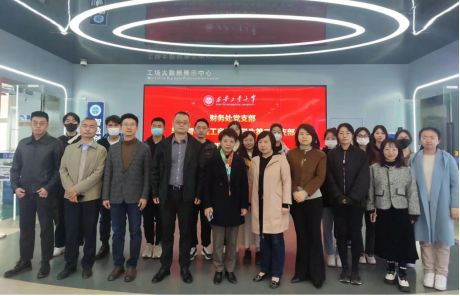 3月22日下午,财务处党支部与经管学院工商第二学生党支部开展“激发科技创新活力,助推学校高质量发展”主题党日活动。总会计师段小存一行赴智造创新工场考察调研,财务处党支部书记、财务处处长薛光,经管学院党委副书记王育晓陪同调研,本科生院副院长程文冬全程讲解并陪同参观。