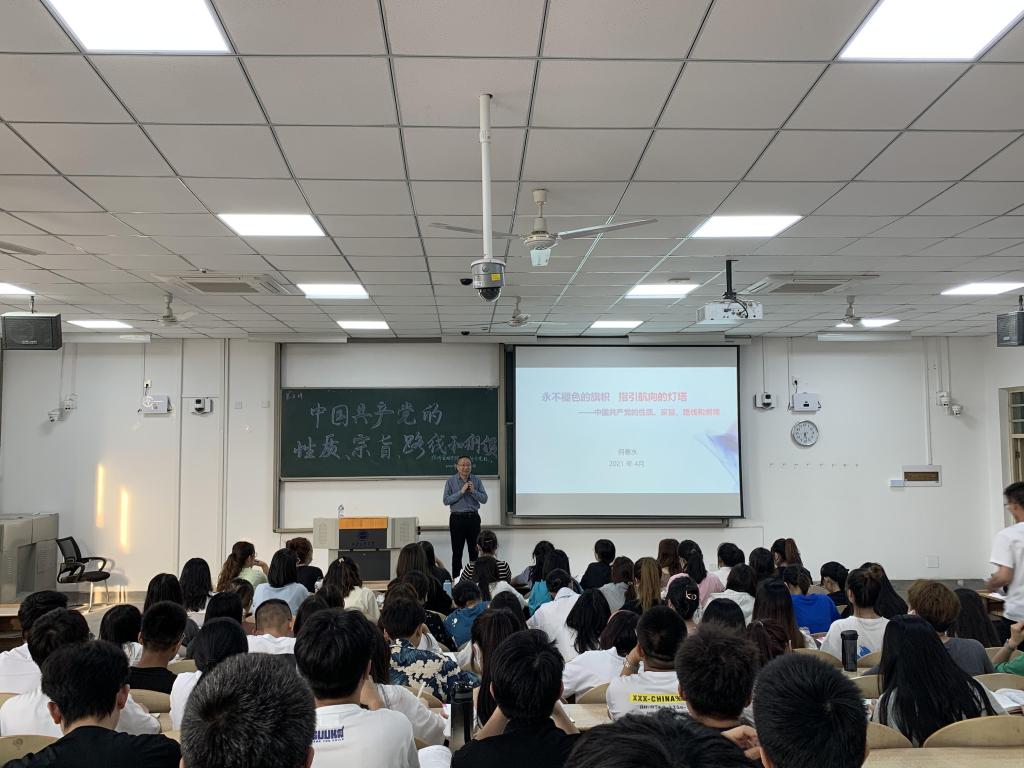 5月19日,BB贝博艾弗森官方网站第64期分党校第五讲“中国共产党的性质、宗旨、路线和纲领”在教1-103开展,本次党课由党办校办主任何春水为140余名党课学员进行授课。