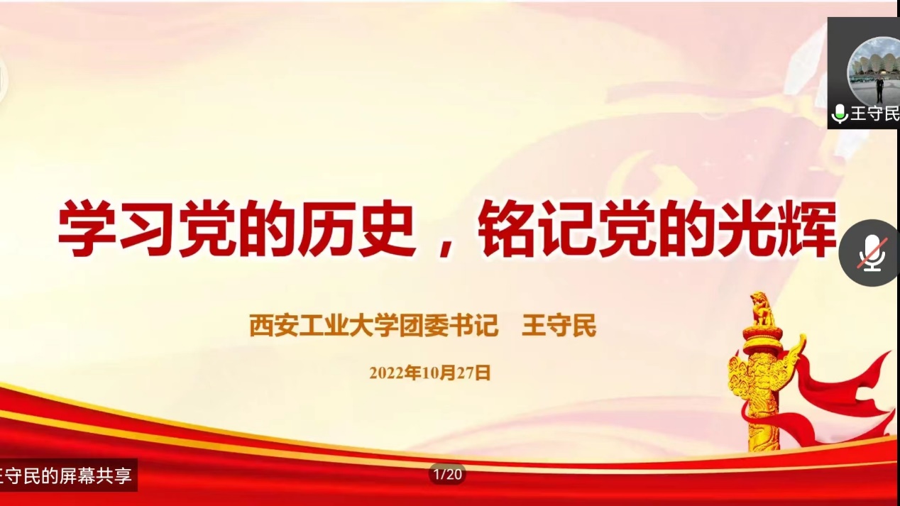 10月27日晚,BB贝博艾弗森官方网站第65期党课培训第一讲“学习党的历史,铭记党的光辉”通过腾讯会议顺利开讲,校团委书记王守民为140余名党课学员进行指导及授课。