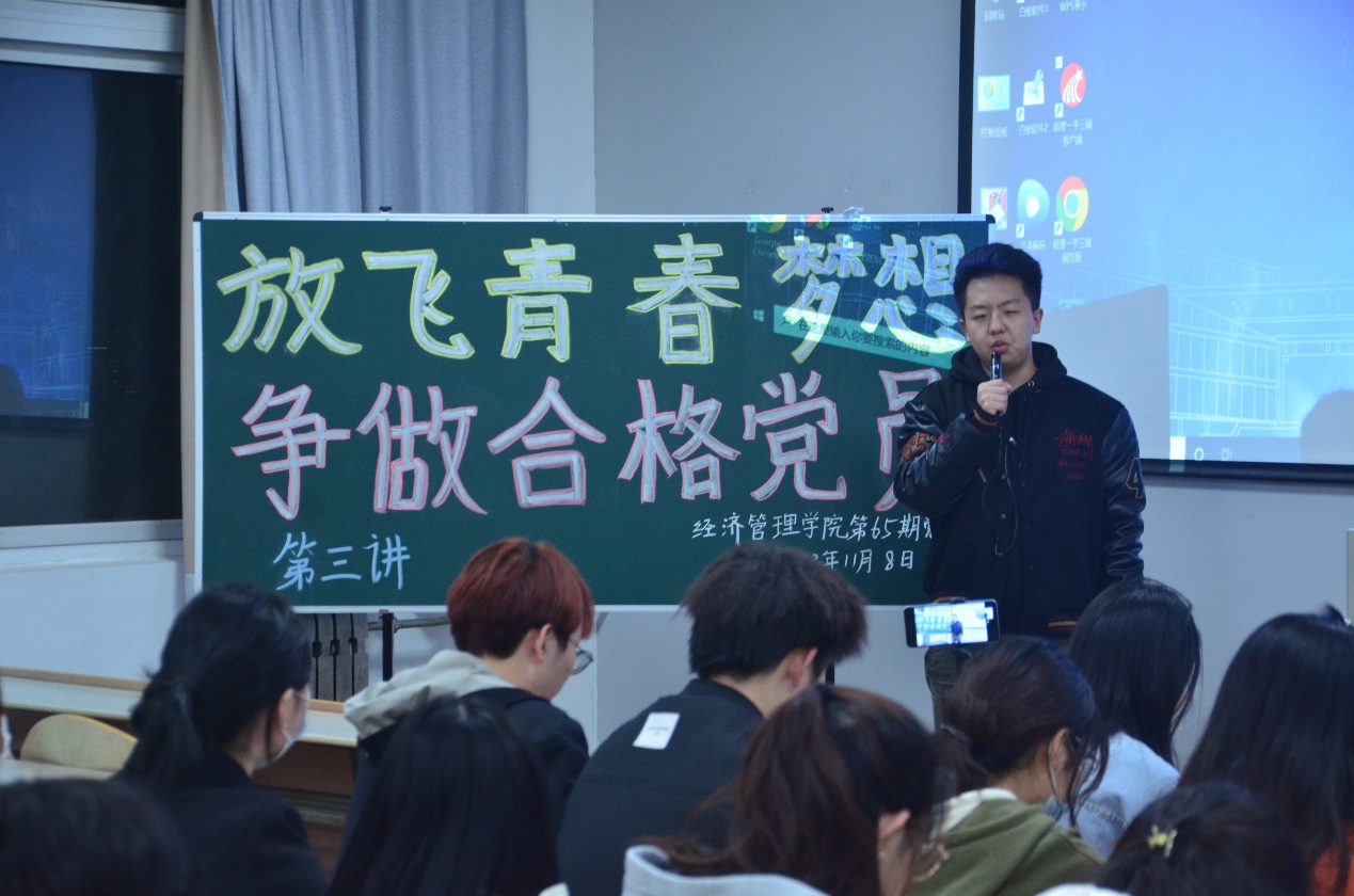 11月8日晚,BB贝博艾弗森官方网站第65期分党校第三讲“放飞青春梦想,争做合格党员”于教2-203教室顺利开讲。本节党课由学校党委组织部老师赵伟奇为学员们展开授课指导,党校140余名学员参加。
