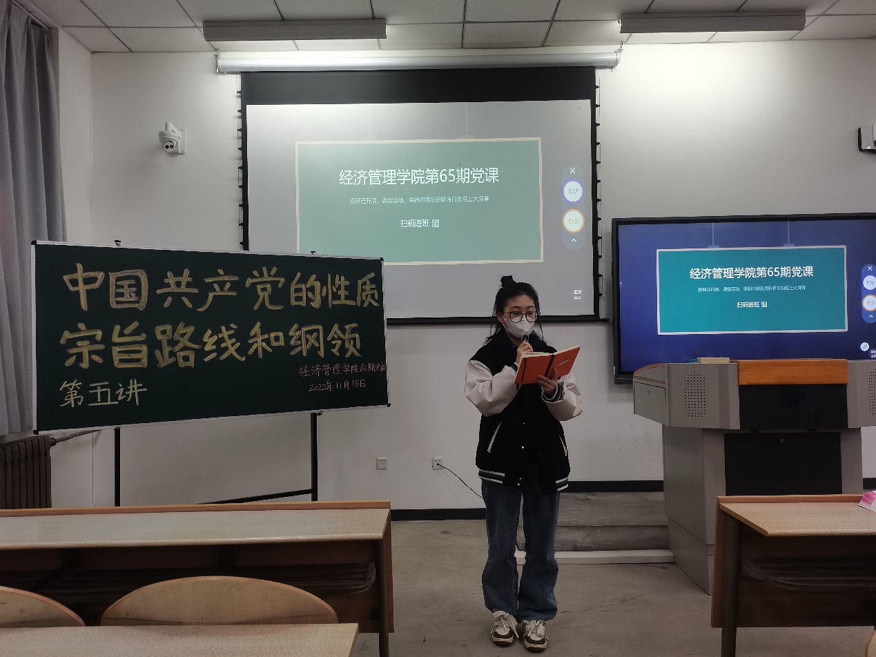 11月15日晚,BB贝博艾弗森官方网站第65期分党校第五讲“中国共产党的性质、宗旨、路线和纲领”在教2-107开展,本次党课由党办校办主任何春水为140余名党课学员进行授课。