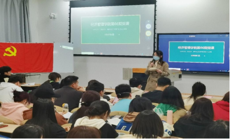 3月23日晚,BB贝博艾弗森官方网站第66期党课积极分子培训班第一讲“学习党的历史,铭记党的光辉”于教2-101顺利开讲,工商第三学生党支部书记侯剑波为120余名党课学员进行指导及授课。