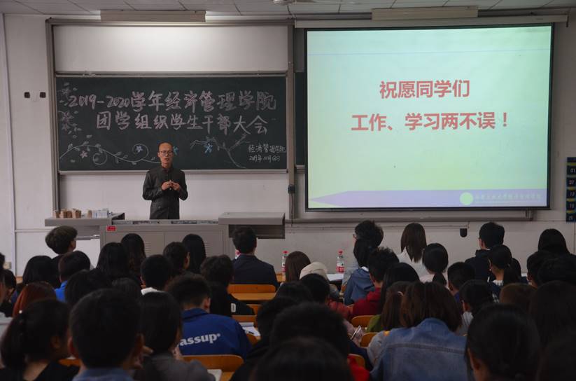 大会伊始,程新峰书记围绕“如何做好一名学生干部”向同学们进行深刻讲解,充分号召全体学生干部将锻炼自己、服务他人作为中心思想,认真对待工作,并指出全体同学应具有的六种意识、六种能力。紧接着,许金鑫老师对全体学生干部发起动员,为同学们介绍本学期常规事务及重点工作内容,并对接下来的工作做出具体部署与规划。随后,团委副书记马思聪明确阐述学生干部应有的素质与状态,分享自己任职以来的心路历程,希望大家在团学组织有所收获。部长代表办公室副主任李行也向同学们发起倡导,勉励同学们带着热忱投入学生工作,共同构筑团学组织温暖大家庭,并提出部分工作要求。最后,部员代表体育竞赛部干事肖翔宇表明决心,提出自己对待工作的见解和看法,与大家共勉,并对全体干事及学院工作给予美好祝愿。