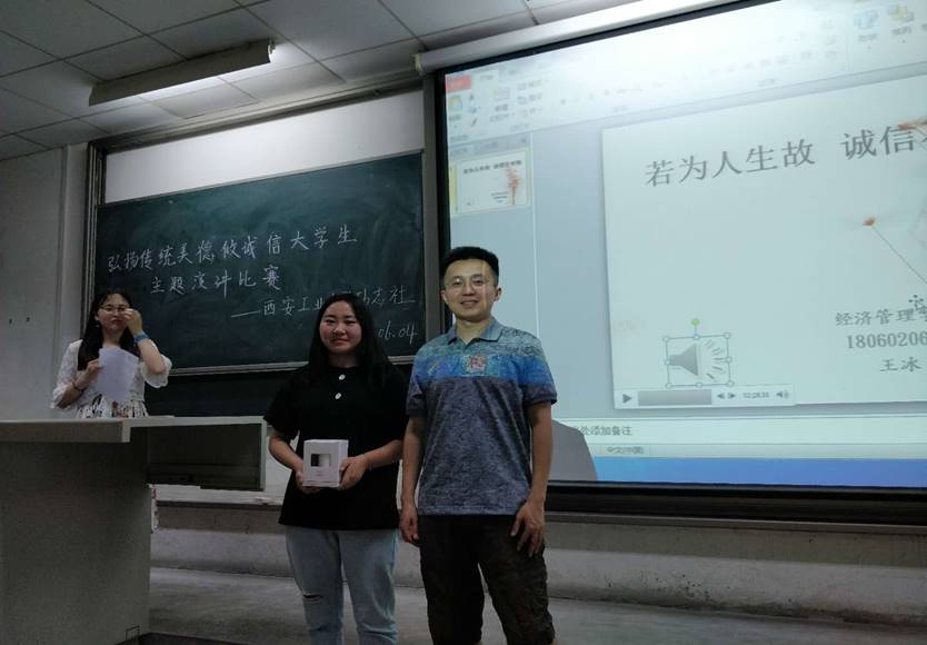 此次主题教育活动分为三个部分,第一个环节是5月25日社团在经纬广场摆摊,通过让全校学生在横幅上签字来达到宣传的目的。其次是5月27日发布网上征文比赛,经过前期的准备和拉票,最终评选出三名得票最高的同学,以达到进一步宣传教育的目的,最后于6月4号,在教2——204举办诚信演讲比赛,通过选手们现场激烈角逐,层层选拔,最终从严格的评分制度中涌现出六位表现优异的同学,网上征文比赛和演讲比赛共同进行颁奖。