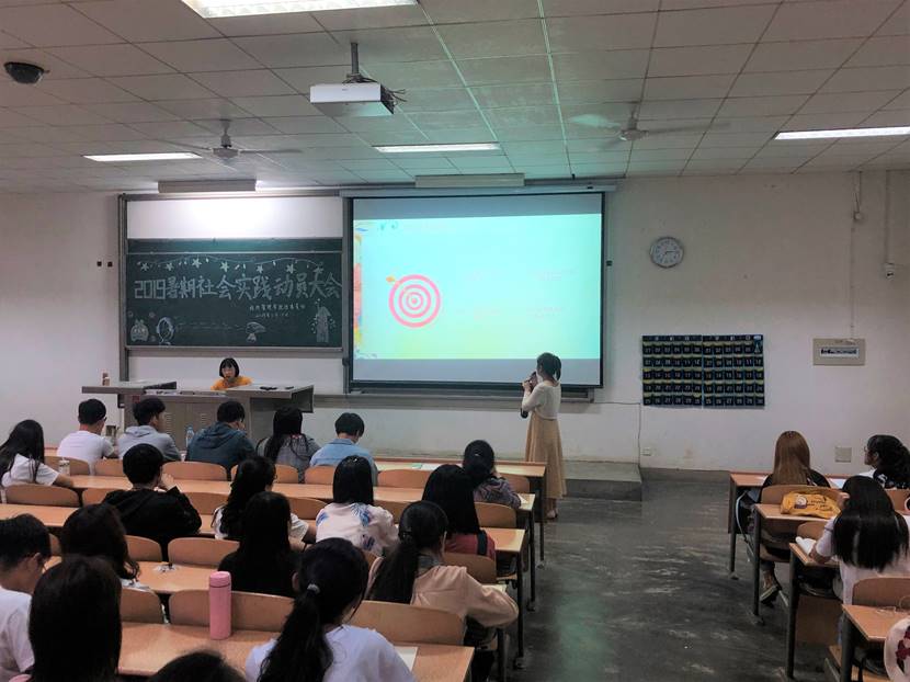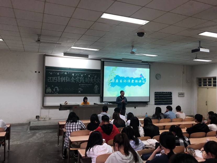会议开始,一段 2018年暑期社会实践优秀团队实践视频带同学们回顾了去年实践情况。随后,李春苗向到场同学们介绍了社会实践具体事项。她分别从实践主题、实践项目类型、实践流程以及评奖评优四个方面展开。接着,优秀实践队代表郭亦普为参会的同学们分享了社会实践经验,他呼吁同学们在正值青春时应积极地加入到社会实践的队伍中来。最后,团委书记侯剑波老师讲话总结,他向在座的同学进行了社会实践活动相关介绍和动员。他表示,经管学院对暑期社会实践活动是积极支持并高度重视的,每位同学们应该认真对待,积极参加暑期社会实践活动。接着他强调了社会实践的重要性以及其对大学生的意义。最后侯老师为参会的同学们分享了往年社会实践指导经验并根据往年经验提出部分实践活动建议。