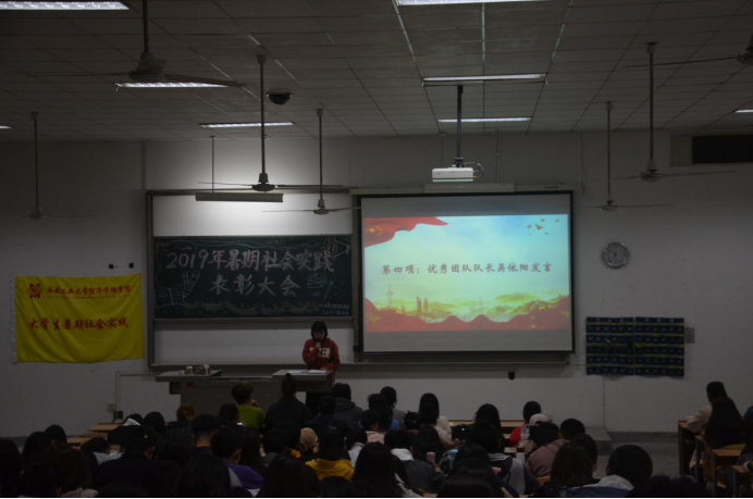 大会伊始,青协部长李素馨对本次社会实践进行总结报告,加深了同学们对社会实践活动的认识与理解。随后,由团委副书记马思聪学姐宣读表彰决定,本次大会重点表彰了院级社会实践优秀团队及个人。并由许金鑫老师和主席团为优秀团体和个人进行了颁奖,对他们的实践精神予以肯定。之后,社会实践优秀团队队长吴依阳、社会实践先进个人代表张晨卓进行了发言。接着大会进行了社会实践优秀DV展示,优秀的摄影作品带同学们领略了社会实践的精神风貌,为大家树立了榜样。大会最后,由许金鑫老师做了社会实践活动的总结,对获奖的个人和团队予以肯定,希望经济管理学院社会实践活动愈加丰富,希望更多的同学积极、认真地参与到暑期社会实践中,书写自己的实践故事。
