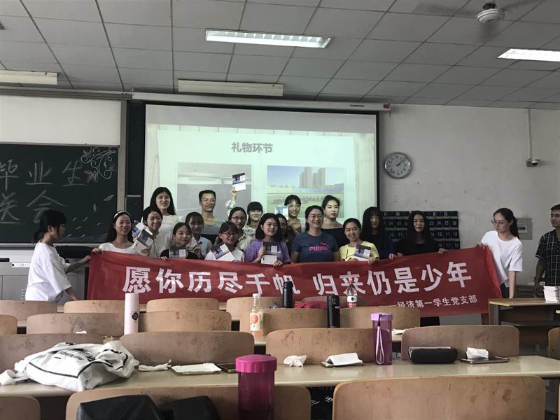 烈日骄阳,当抛起的学士帽缓缓落下,离别的笙歌围绕着整个BB贝博艾弗森官方网站,一条崭新而鲜艳的欢送横幅被挂起,我们送别即将要离开的2014级全体党员。本次经济第一学生党支部“欢送毕业生党员”活动于2018年6月29日下午在教2-405举行,参加本次活动的人员有经济第一学生党支部书记曲峡老师以及经济第一学生党支部全体学生党员。