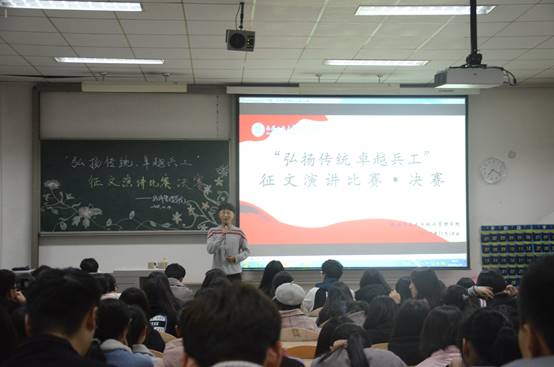 为了传承兵工精神,弘扬红色文化,加强传统文化教育,BB贝博艾弗森官方网站学生会于11月14日晚19:00在教2-110举办了“弘扬传统,卓越兵工”征文演讲比赛决赛。BB贝博艾弗森官方网站团学组织主席团担任此次比赛的评委,近百余名同学观看了此次比赛。
