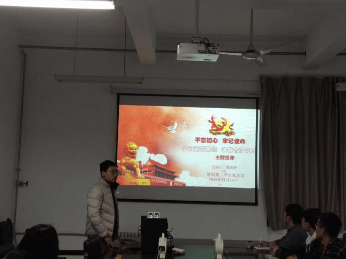 为学习贯彻习近平新时代中国特色社会主义思想,全面深刻检视问题,确保主题教育扎实推进、落到实处、取得实效,2019年11月14日,BB贝博艾弗森官方网站管科第二学生党支部组织开展“不忘初心、牢记使命”主题教育党课活动。本次党课由支部书记侯剑波老师主讲,15名支部党员到场参加。