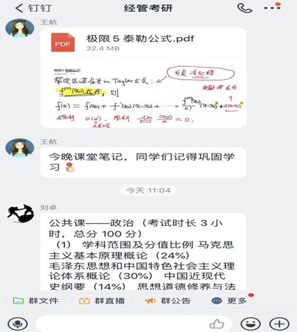 此次“考研云课堂”于2020年3月18日晚19:30开始第一讲,共开设数学、英语、政治三门考研公共课的线上直播,同时相关课程老师全天在线为学生进行答疑解惑,确保有问必答、不留盲点。第一次直播课观看人数达到454人,同学们热情高涨,纷纷表示学有所获,点赞学院此举“太贴心了”,希望“考研云课堂”能够长期办下去。