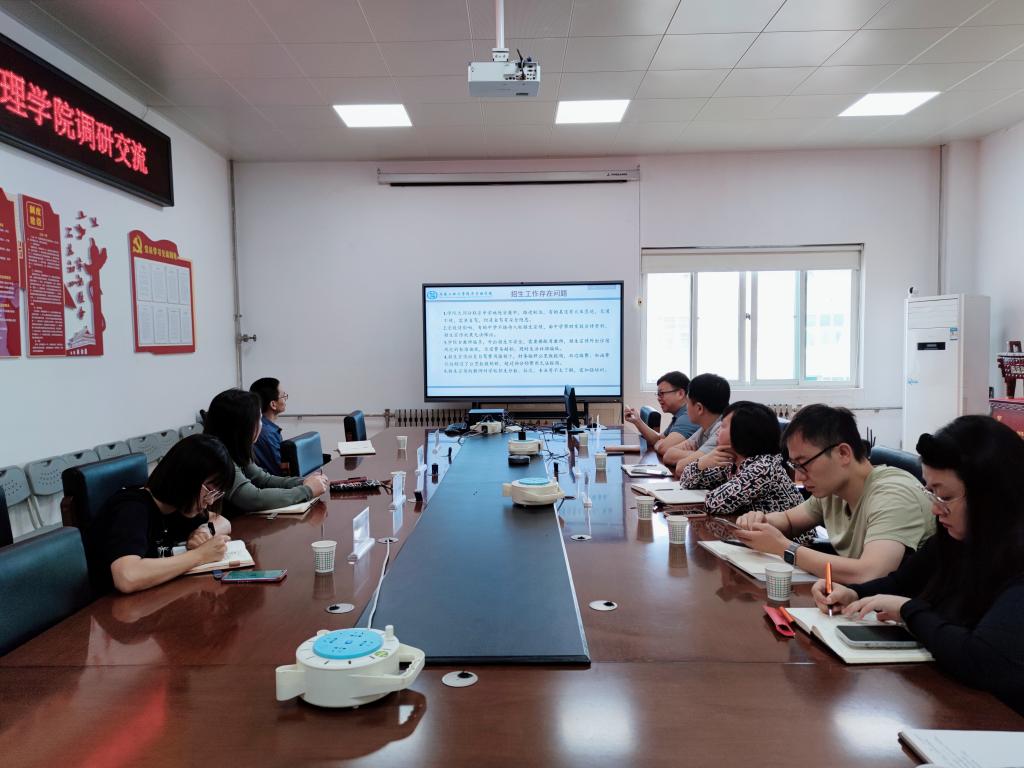 会上,姬浩对本科生院杨琳一行的到来表示热烈欢迎,同时也对本科生院对贝博官网招生和考研工作的指导与帮助表示衷心感谢。随后,冯川川从招生工作组织架构、具体工作内容、存在问题等方面介绍了学院招生宣传相关工作。王育晓总结了学院近三年的考研工作,汇报了近期对2023届毕业生考研意向和预报名摸底的两轮调查结果,并针对目前存在的不足和问题,提出解决思路。全体与会人员就下一步招生和考研工作的方式方法、思路措施各抒己见、献计献策,整个会议气氛融洽热烈。