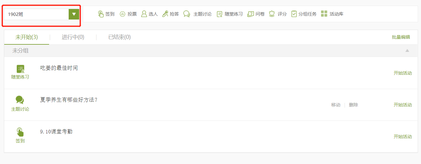 打开学习通,进入课程,选择要上课的班级,添加保存课堂活动。