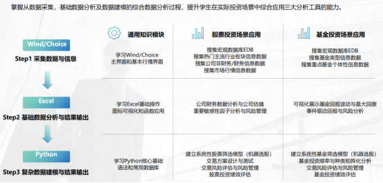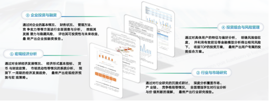 职业力培养:金融行业核心技能(Excel数据分析、Wind金融终端使用、Chioce金融终端、Python金融数据分析),无缝衔接职场工作,弥补大学知识学习与企业用人需求的鸿沟。