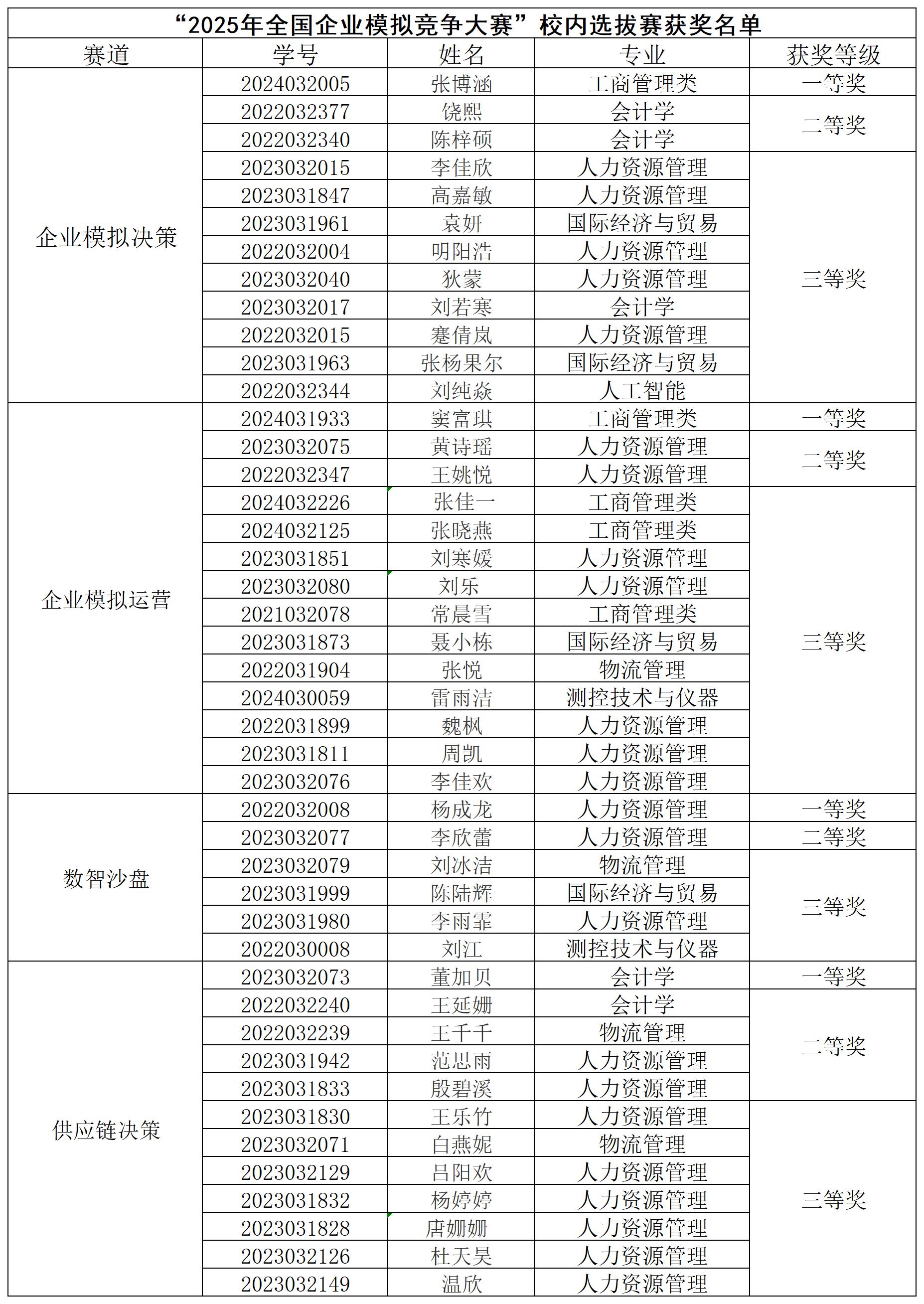 2025年3月19日至3月22日,由本科生院(教务处)主办,BB贝博艾弗森官方网站承办,人力资源发展促进会协办的2025年全国企业竞争模拟大赛校内选拔赛圆满完成。本次大赛面向BB贝博艾弗森官方网站全体在校本科生,比赛分为企业运营赛道、企业决策赛道、供应链决策赛道、数智商业沙盘赛道四个赛道,在比赛开始前,各赛道进行了线上和线下的培训。校内选拔赛分为初赛和决赛两个阶段,均通过互联网远程进行。