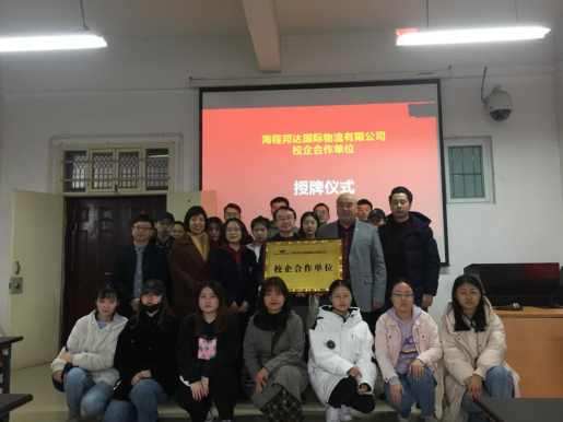 11月29日上午,海程邦达国际物流有限公司全资子公司——西安海邦物流有限公司副总经理赵忠义和行政人事部经理熊苏一行来到BB贝博艾弗森官方网站,代表海程邦达集团公司为贝博官网进行“校企合作单位” 授牌。