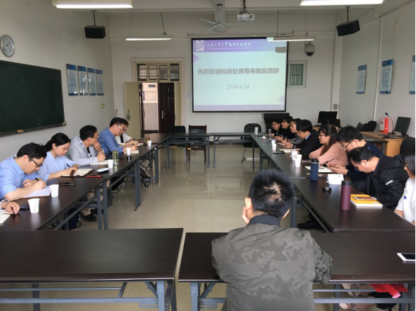 4月24日上午9点,科技处处长陈建、副处长肖锋、周黎萍等带队一行7人前来BB贝博艾弗森官方网站调研科研工作,在教五502会议室召开科研工作研讨会。BB贝博艾弗森官方网站党委书记苏兵、副院长姬浩及各个学科部分科研骨干教师参会。会议由副院长姬浩主持。