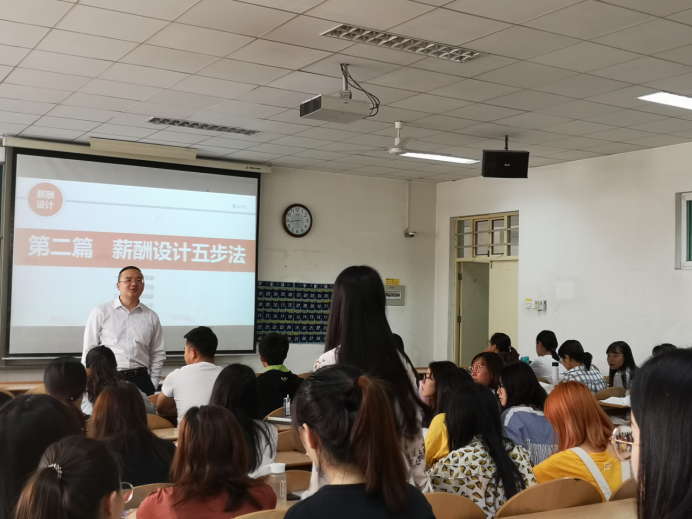 李明泽先生是北大、清华总裁班特聘教授,他从管理热点切入,给学生分享了自己15年的创业与管理实践经验,在讲到薪酬设计大框架的同时,渗透了企业战略、股权、管理与职业发展等专业知识,并和学生进行了充分的互动。他幽默诙谐的授课方式,瞬间拉近了与同学们之间的距离,极大地调动了学生们的积极性,形成了良好的学习氛围,提高了学生讨论的参与度。