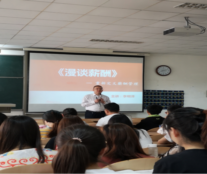2019年5月21日上午,BB贝博艾弗森官方网站企业导师、九智教育集团董事长李明泽先生来贝博官网为人力资源管理专业16级、17级学生做了题为《漫谈薪酬》的专题讲座。
