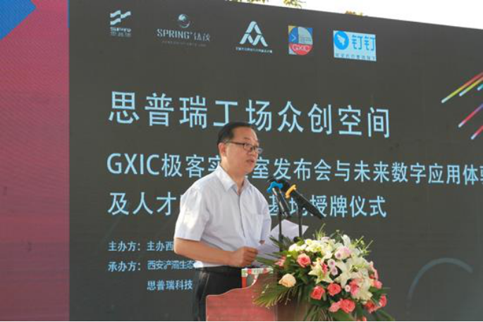 西安浐灞生态区管委会副主任黄秦政首先致欢迎辞,他认为成立园区数字化科普科研及人才培养基地将为政府、企业和高校提供桥梁和平台;阿里巴巴钉钉西北区行业总监赵明岗介绍了《钉钉数字化应用及人才培养》。