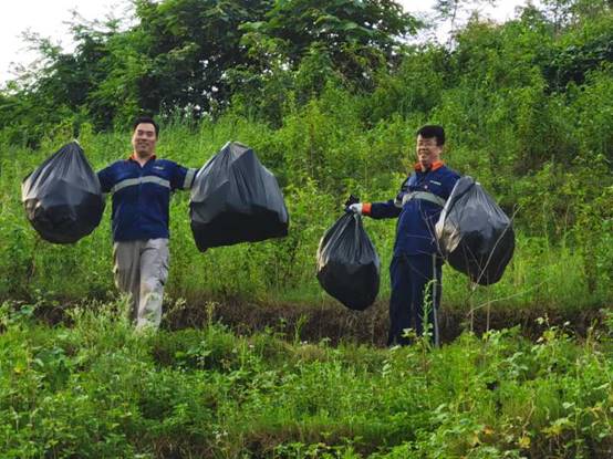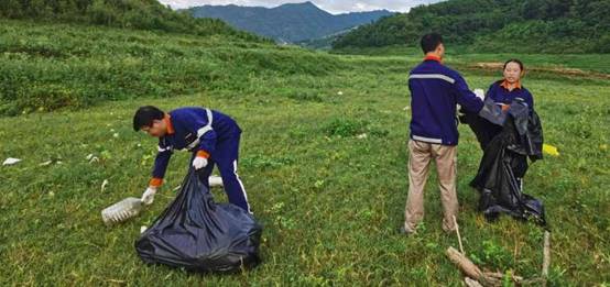 任马鞍桥生态矿业有限公司综合办公室主任崔淑珍向实践队介绍了该企业在面对陆续出台对秦岭生态环境保护的条例时,企业积极的配合并整改公司。并展示了为达标新增的排污设配及垃圾自处理仓库。近年来,越来越多的企业开始重视保护环境和减少污染,从最开始的肆意开采和就近排放污染到如今的有计划有目的的开采和加购垃圾处理装置,离不开每一位关注秦岭生态问题的爱心人士。期间,公司副总王凯先生带领员工在新开设的施工处捡附近地上的生活垃圾。