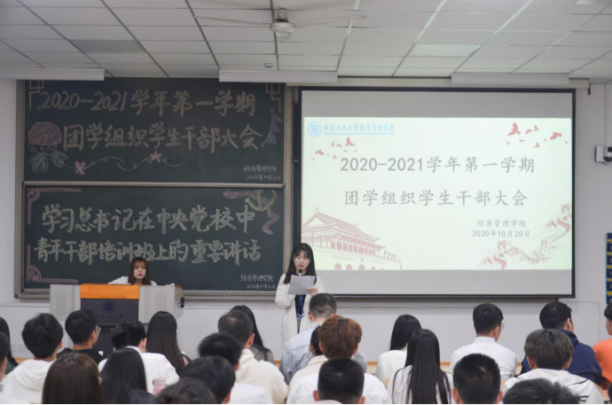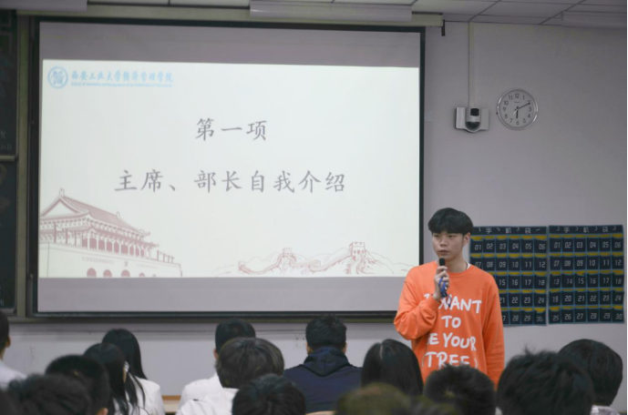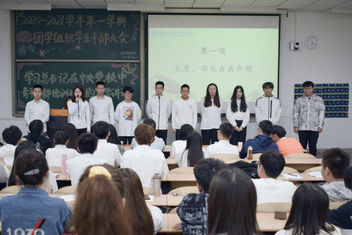 大会伊始,各主席和部长作简要自我介绍。紧接着,学生干部代表发言。主席团代表卢红升表示,作为学生干部,更多的意义在于把自己、部门以及学院的学生工作建设得更好,她将与在座的各位共同努力,成为更优秀的学生干部。部长代表刘宏诚作出承诺,“岁月静好,需得有人负重前行,既然在我们这里开启了新时期,我们就应该且能做好这个先行者,我们必将完成承前启后的责任。”最后,许金鑫对大会进行总结,勉励各学生干部积极响应新学期形势下的政策变化,迎接挑战,不断革新,并对全体学生干部及学院工作给予美好祝愿。