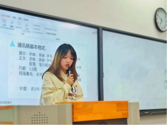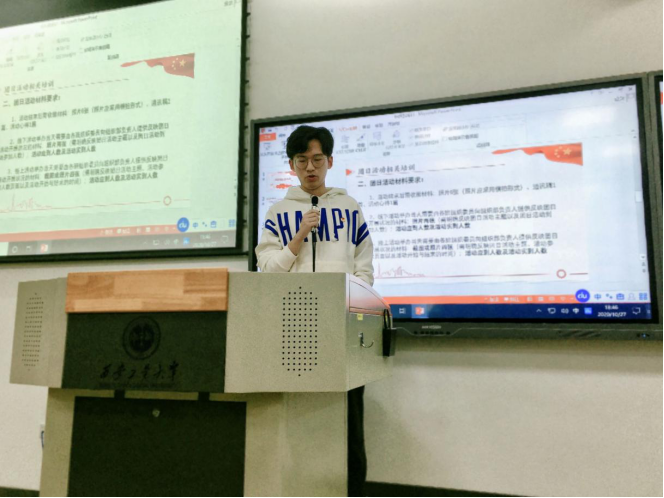大会伊始,19050719团支部魏嘉博发言。魏嘉博表示,作为一名团干部,要具备创新、管理、宣传发动和组织领导能力,同时也将通过本次培训来提高自己的思想境界、工作能力及综合素质。紧接着,组织部温迪从职能介绍、团日活动开展要求及活动材料收缴要求三方面给各支部干部进行培训。其次,记者团徐一诺进行通讯稿的写作培训,分别阐述了通讯稿的格式、内容、照片及存放方式等相关要求。随后,青年志愿者协会夏维婷对第二课堂工作进行分析说明并答疑有关问题,使在座的各团干部更加清晰地了解工作内容及流程。最后,团委副书记卢红升号召各支部团干部积极发挥各自职能,响应相关政策变化,共同为贝博官网学生工作付诸努力,创造更美好的明天。