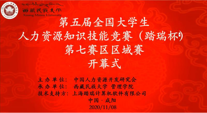 2020年11月8日,由中国人力资源发展研究会主办、西藏民族大学管理学院承办、上海踏瑞计算机软件有限公司技术支持的第五届全国大学生人力资源管理知识技能竞赛(踏瑞杯)第七赛区区域赛在线上顺利进行。贝博官网人力资源管理专业参赛选手于人力资源管理实验室(教五505东)进行比赛,本次比赛由人力资源管理专业系主任李育英老师带队,武朝、班军营、王源和翟晨雨四名同学组成参赛代表队。