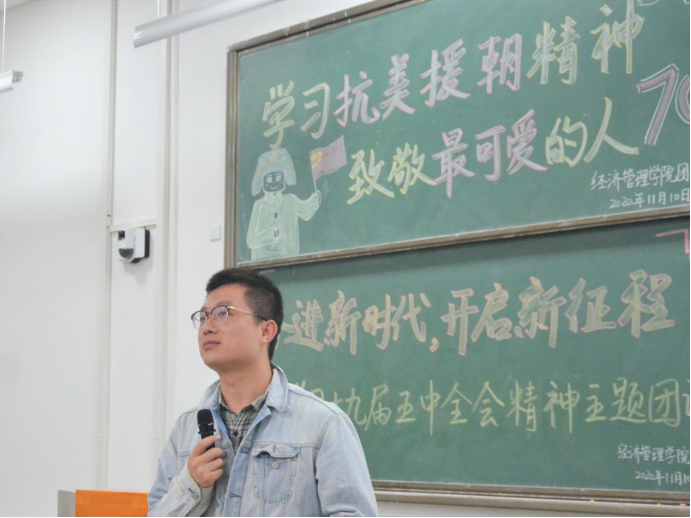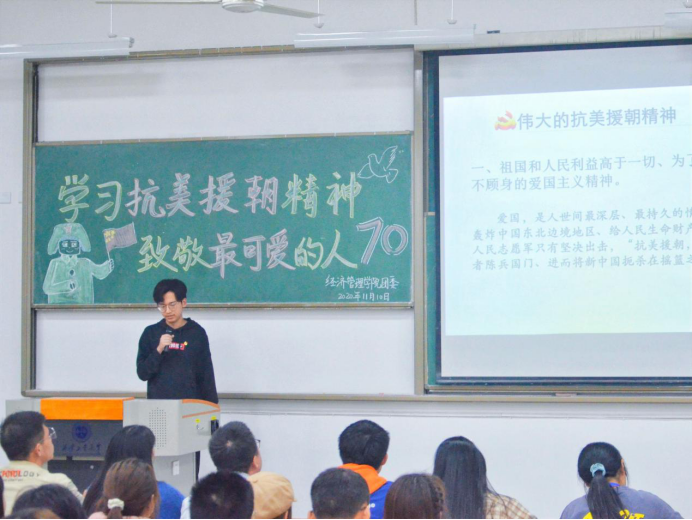 11月10日下午,BB贝博艾弗森官方网站举办“学习抗美援朝精神,致敬最可爱的人”主题团课教育活动。此次活动由经管院团委组织部部长温迪带领学习,组织部副部长徐笑影主持。