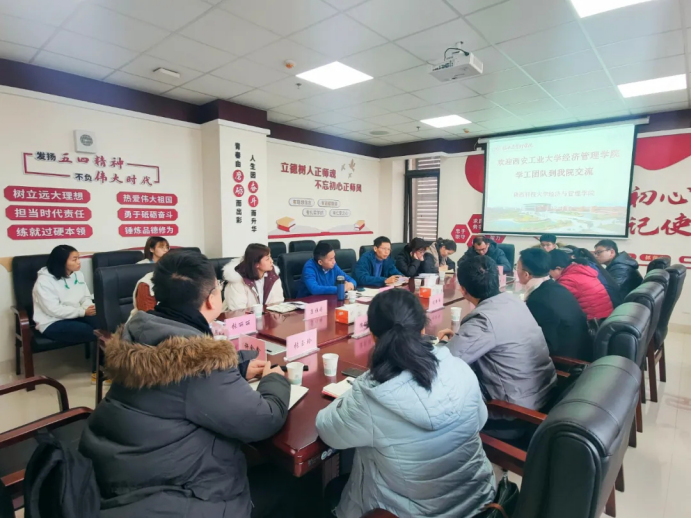 12月15日上午,学院党委副书记程新峰一行7人来到了陕西科技大学经济与管理学院,受到了该学院副书记陶兴旺的热情接待。陶兴旺首先介绍了学院学工队伍整体状况,随后他对本学院在推进三全育人工作中的特色做法和先进经验做了介绍。陶兴旺指出,在三全育人工作中,陕科大经济与管理学院举全院之力,系统谋划、精心设计、全面发动学院教师,不断将三全育人综合改革试点引向深入、推向实处,不断提升育人质量。同时他介绍了学院以就业工作为着力点,发挥教师的主观能动性,促进三全育人综合改革的好做法、好经验。陕西科技大学经济与管理学院分管专项工作的辅导员老师分别对就业工作、党建工作、团学工作、少数民族生管理、心理健康教育工作做了专题分享。贝博官网各学工干部听取之后对想深入了解的问题进行了提问。大家畅所欲言,气氛热烈。