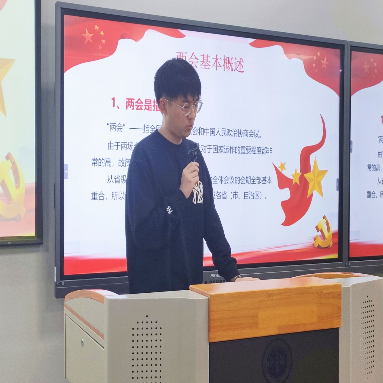 活动伊始,康怡介绍了有关此次两会的时间背景。接下来,由温迪通过PPT从基本概述、主要议程、看点、关键词等方面向大家介绍了有关此次两会的具体内容与精神。两会既是对上一年工作的回顾,也是对新一年政策的报告。同学们还通过观看两会的相关视频,进一步了解到两会的重要内容。两会既是对上一年工作的回顾,又是对新一年政策的报告。