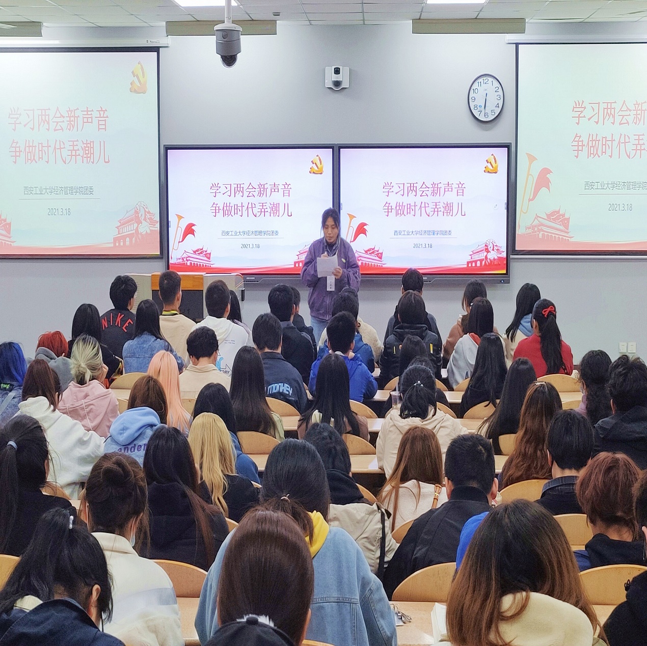 3月18日晚,BB贝博艾弗森官方网站团委在教2-201开展以“学习两会新声音,争做时代弄潮儿”为主题的活动,让两会精神进校园,推动校园精神文明建设。本次活动由康怡主持。