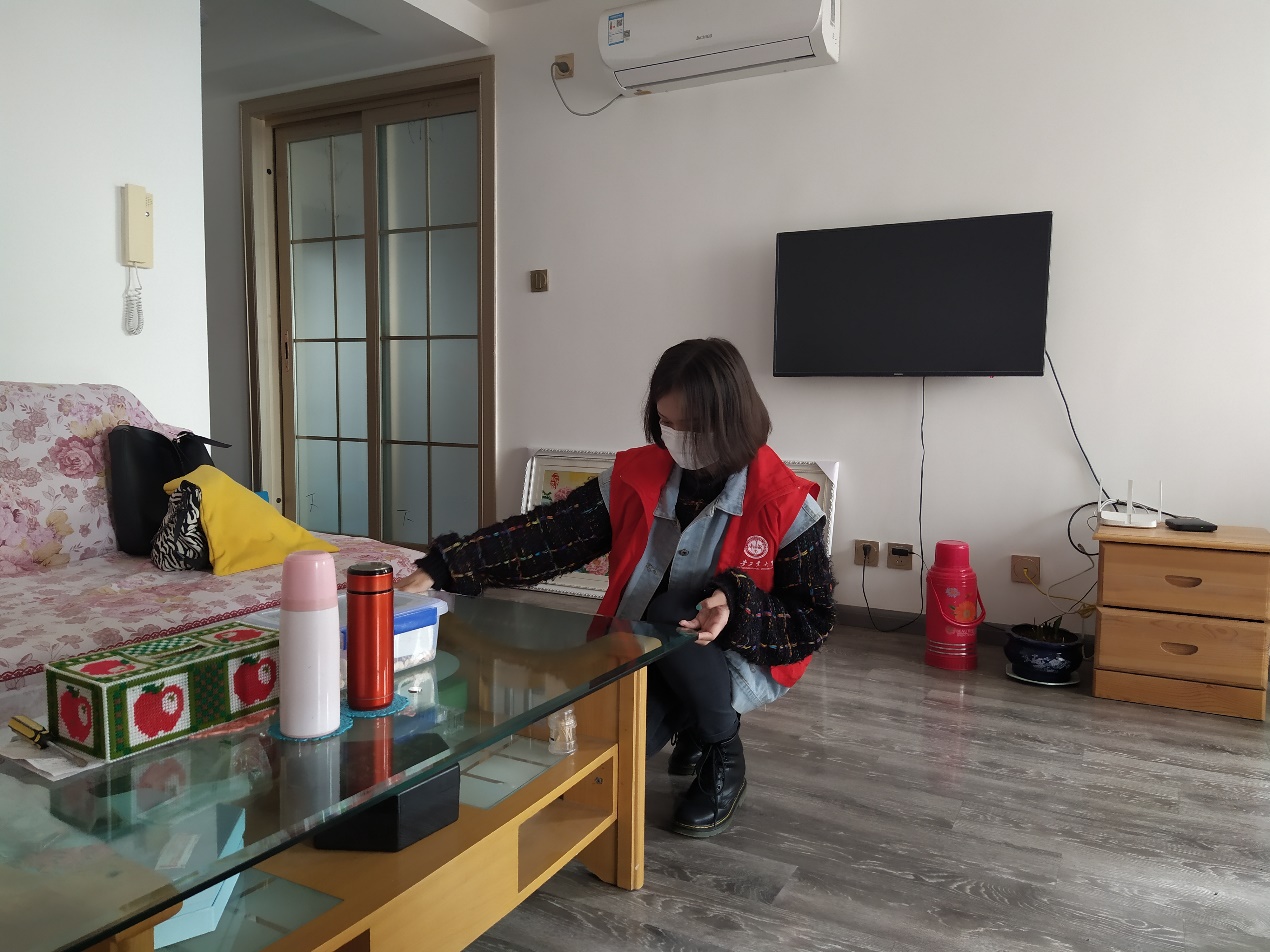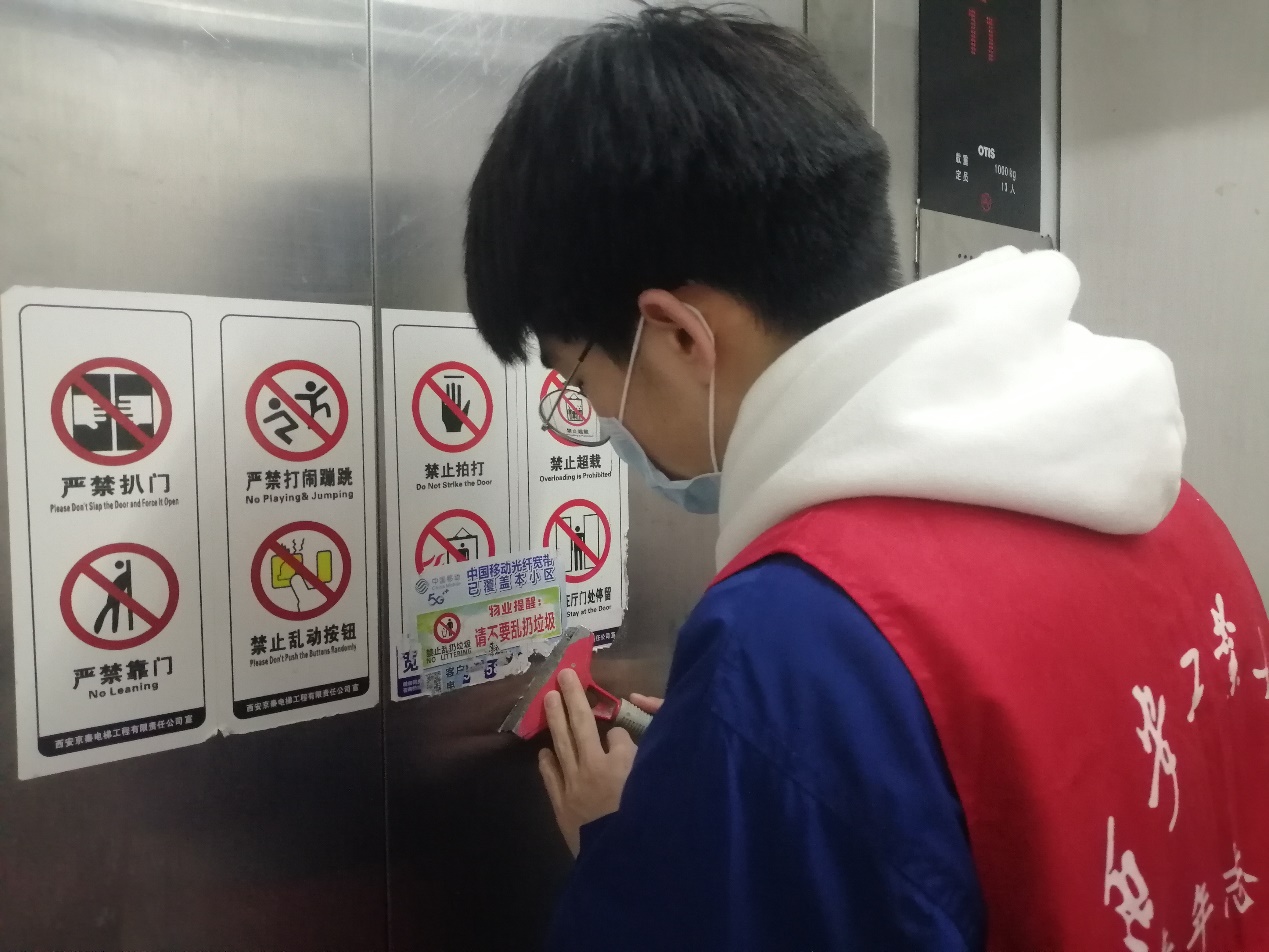 早上八点,志愿者们乘车来到草滩佳苑与工作人员进行接洽,兵分几路展开了送温暖活动。首先,志愿者以四人一组共计五组志愿者们走进教独居老人家中,帮助生活不便自理的老人擦桌子,扫地,打扫卫生,让老人的家里重新变得整洁,焕然一新。随后,在小区广场的志愿者们教老人如何使用智能手机,并教他们如何在网上办理社保服务。此外,社会车辆占用消防通道会带来极大的安全隐患,志愿者们在占用社区消防通道的车辆上放上提醒标语,给社会车辆以警示。最后,楼道中的小广告很影响居住环境的美观,志愿者们拿着清洁铲认真仔细地铲除小广告,给社区带来更加干净整洁的环境。
