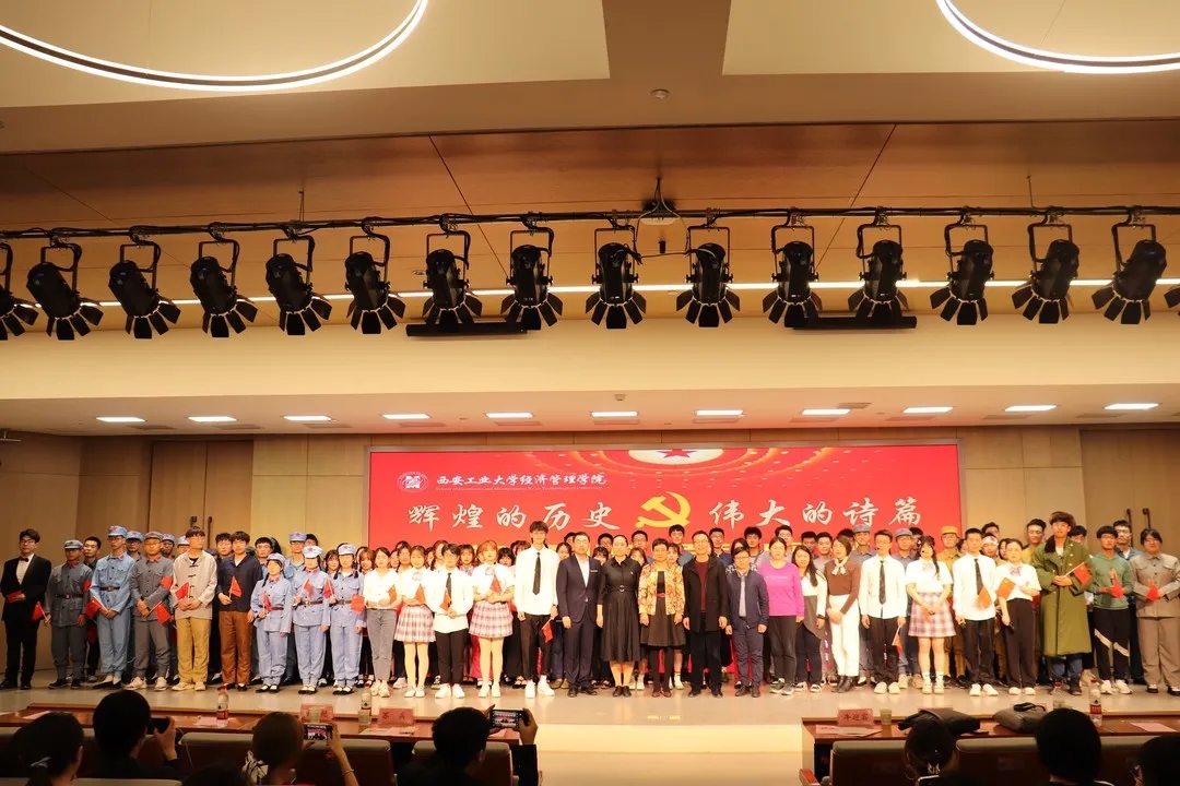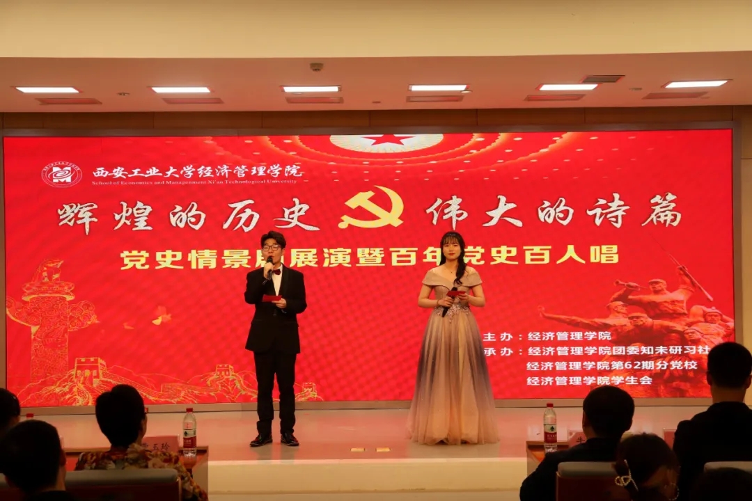 演出以百年党史百人唱节目组合唱《我和我的祖国》开篇,以红歌串烧落幕,中间穿插情景剧、小品、歌舞等节目,经管学子用动人的歌声化作深情的祝福,齐声歌颂伟大的祖国。演员们真情流露,歌声铿锵有力,充分展现了新时代青年蓬勃向上的精神风貌。