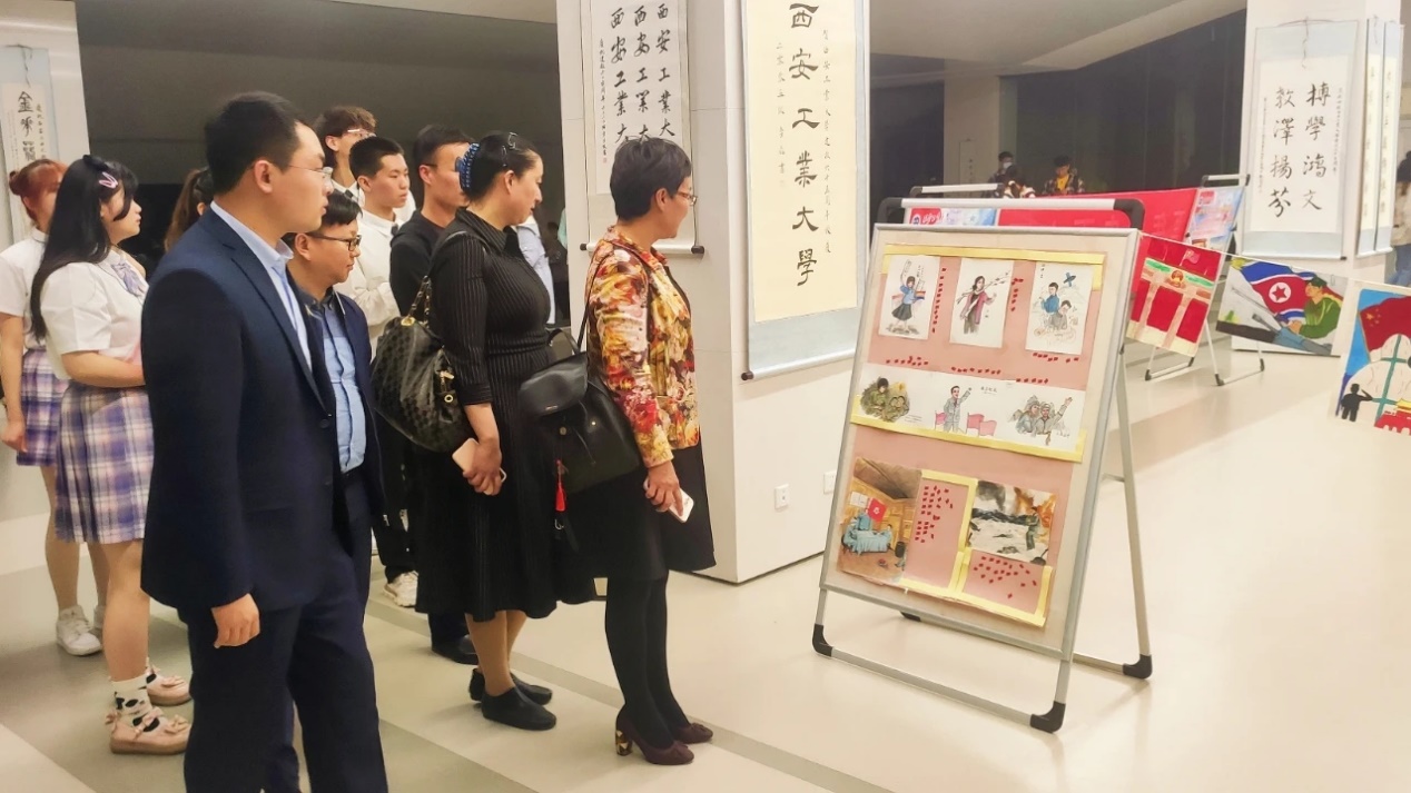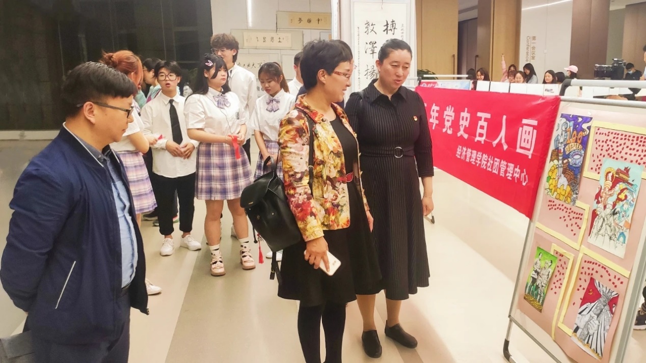 演出结束后,嘉宾共同参观了百年党史百人画作品展示。一幅幅画作,讲述党史经典画面,激励青年学子鼓舞斗志。透过画卷,波澜壮阔绘就百年征程,回望历史,历久弥坚不忘百年初心!