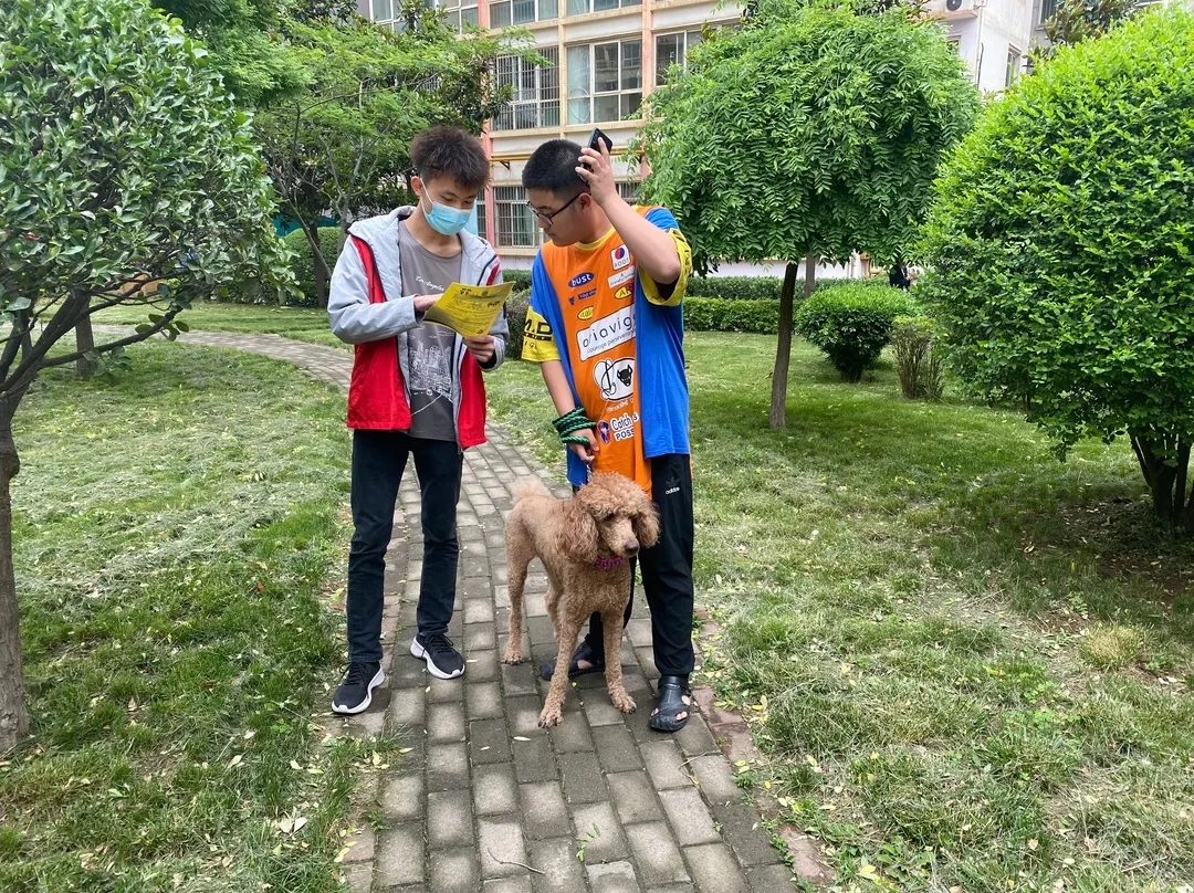 另外一组志愿者在社区中分发宣传单,向社区居民们宣讲文明养犬的知识。通过志愿者们的讲解,居民们对文明养犬,如何使宠物与人类更加和谐的相处有了进一步认识。