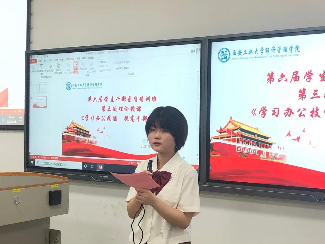 为提高学生干部素质培训班成员的办公能力,使其可以尽快融入BB贝博艾弗森官方网站团学组织工作中,BB贝博艾弗森官方网站5月25日晚于教二106开展了第六届学生干部素质培训班第三次理论授课——学习办公技能,提高干部水平。本次大会由杨莎主持。