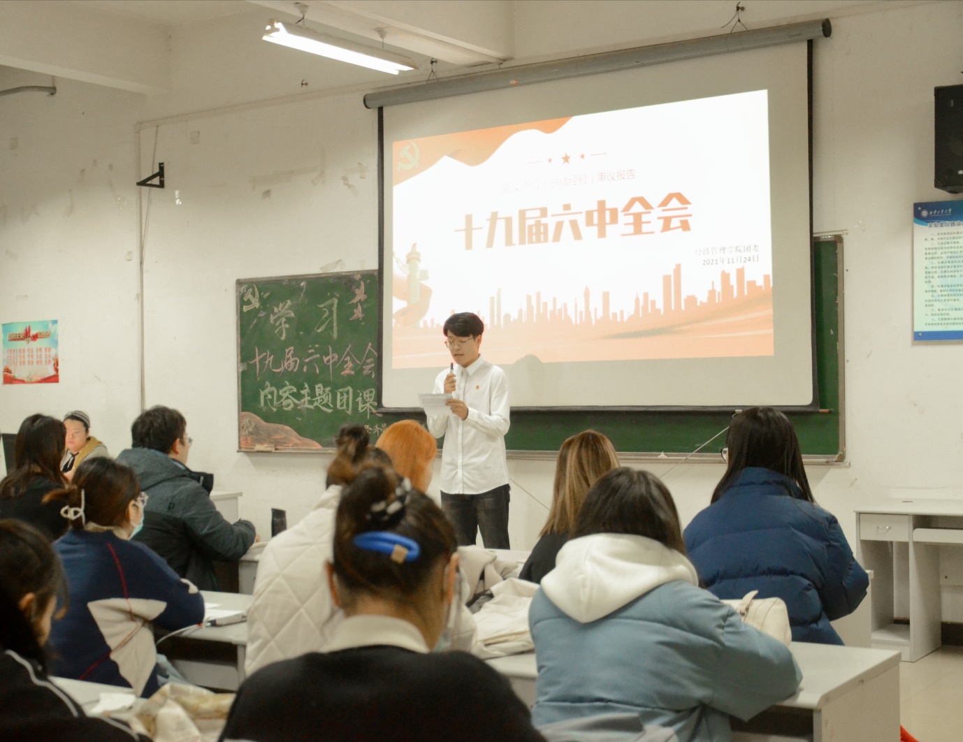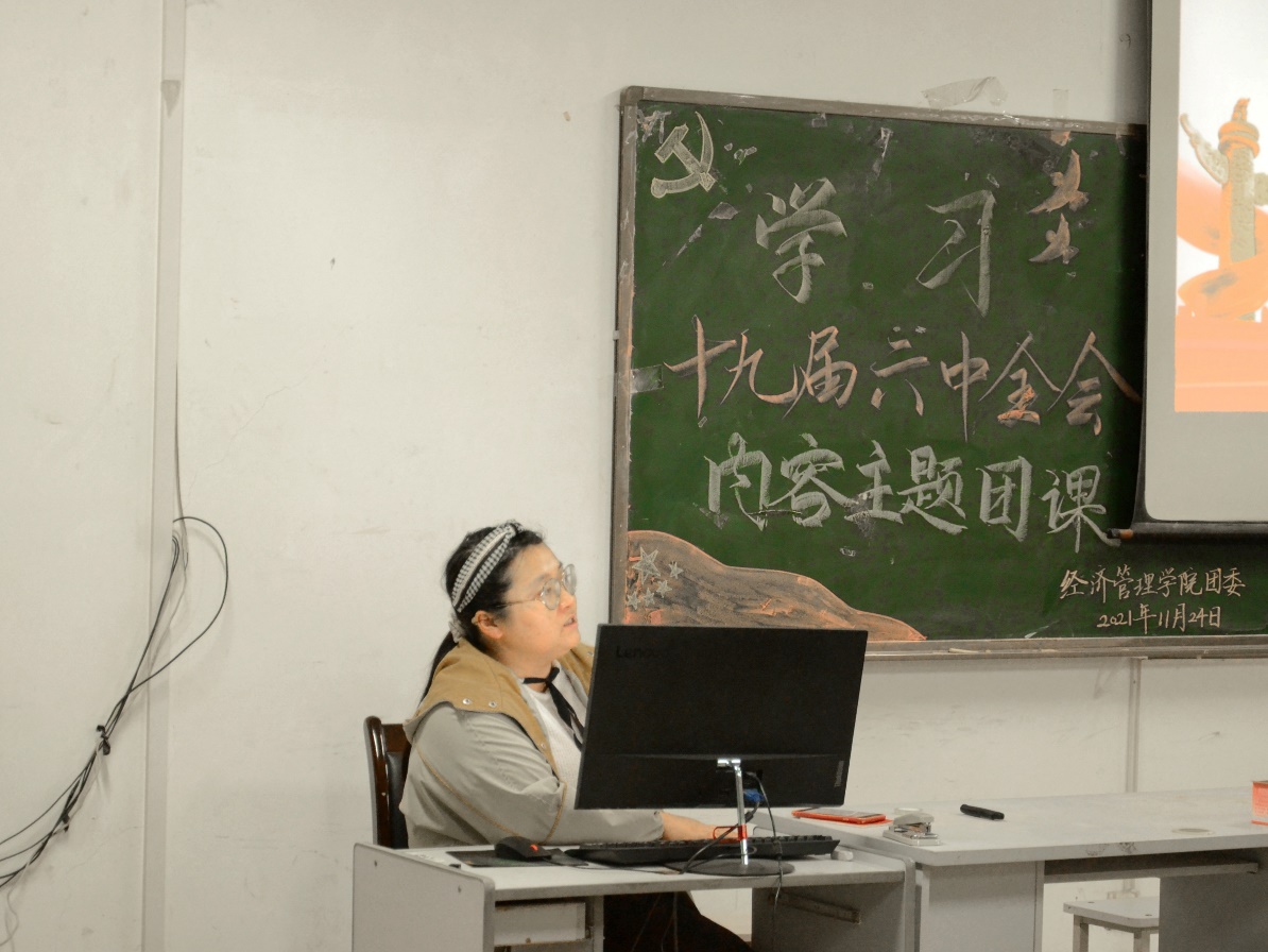 11月24日,BB贝博艾弗森官方网站学习十九届六中全会内容主题团课在教5-506召开。由BB贝博艾弗森官方网站邵欣老师领学。唐绎人主持。
