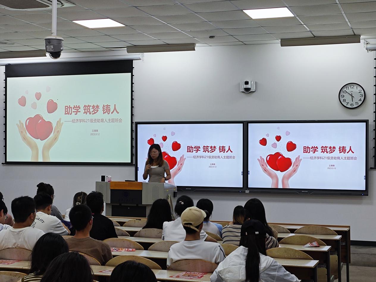 帮助同学们尽快调适新学期学习状态,9月12日下午,BB贝博艾弗森官方网站经济学科在教2-103召开2021级“奋斗青春 精彩未来”年级大会暨“助学 筑梦 铸人”资助育人主题班会。本次会议由21级辅导员王倩倩主持,经济学科21级全体学生参加。
