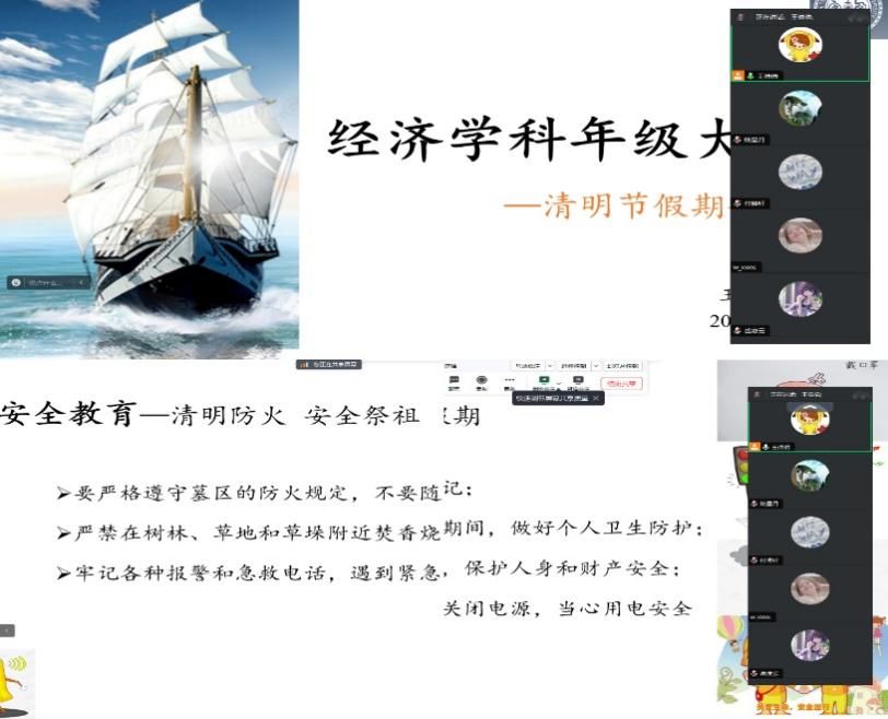 为宣传安全知识,提高同学们的安全防范意识, 4月3日晚上,BB贝博艾弗森官方网站经济学科在腾讯会议召开了清明节假期安全教育年级大会。本次会议由辅导员王倩倩主持,2021级、2022级经济学科学生全员参加。