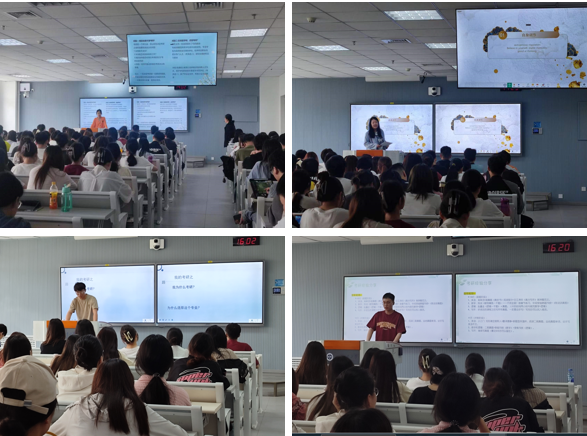 首先,23级企业管理专业研究生张庆文、会计专业研究生张益宁、物流工程与管理专业研究生万玮鑫、20级会计学本科生曹珂四名同学分别从考研方向、择校、资料选择和复习方法向大家分享经验,着重强调要明确自身能力,选择合适赛道,合理规划时间,端正考研心态。同时提醒大家在备考过程中,要把焦虑和抱怨转化成学习的动力,关注当下,平衡学业与生活,劳逸结合。