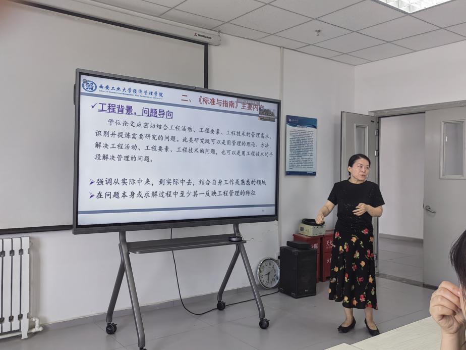 随后,郭清娥老师从工程背景、问题导向,理论指导、数据支撑,硕士水平、成果实用,论述严谨、写作规范,工作饱满、独立完成五个方面详细讲述了学位论文的标准和总体要求,并介绍目前工程管理类论文的多种形式,指出论文选题常见的几种问题。